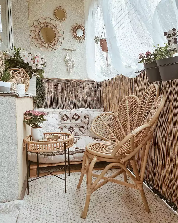 نی و بامبو یک انتخاب عالی برای بالکن است. در ضمن باید بدانید این نوع تزئینات برای داخل هم عالی هستند. از چراغ های ریسه ای برای روشنایی و اضافه کردن گل ها برای رنگ آمیزی بیشتر می توانید کمک بگیرید.