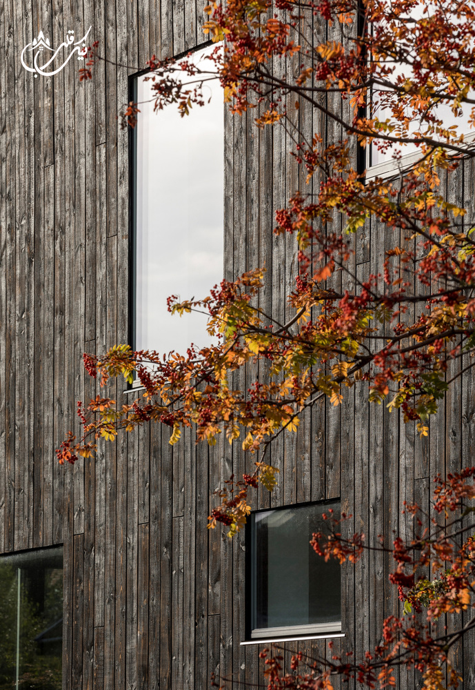 یکی از مزیتهای این ویلا استفاده از چوب های کاج ذغالی است. در معماری ژاپن هم از این نوع کاج استفاده می کردند. وایکینگها هم در گذشته برای محافظت از سازه های چوبی شان از این کاج های ذغالی استفاده می کردند. عناصر چوبی این ویلا در فاصله چند روز مونتاژ شده اند و این به معنای هزینه کمتر در ساخت است.