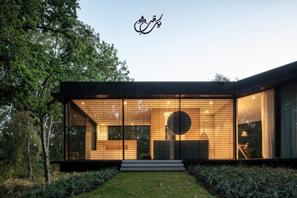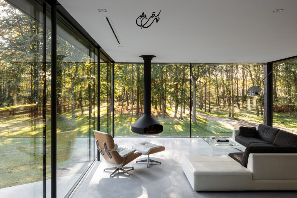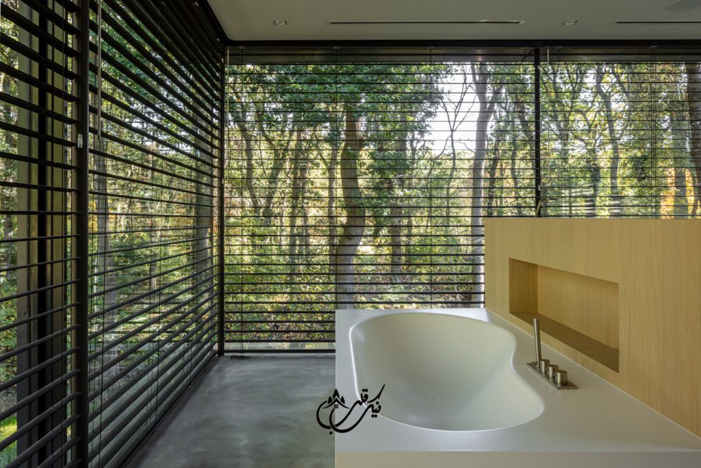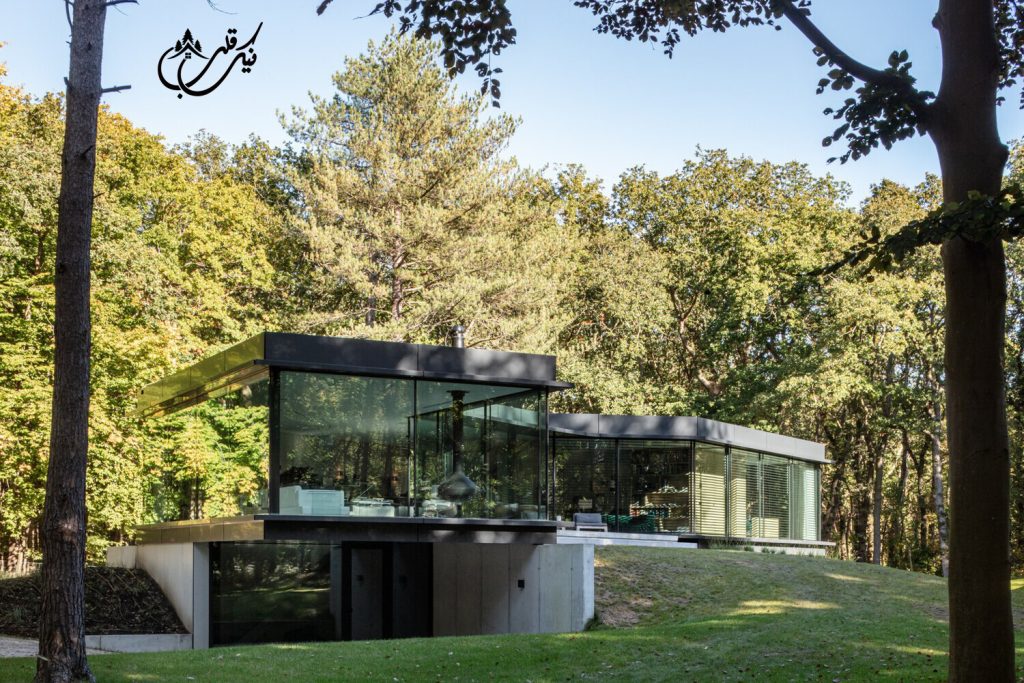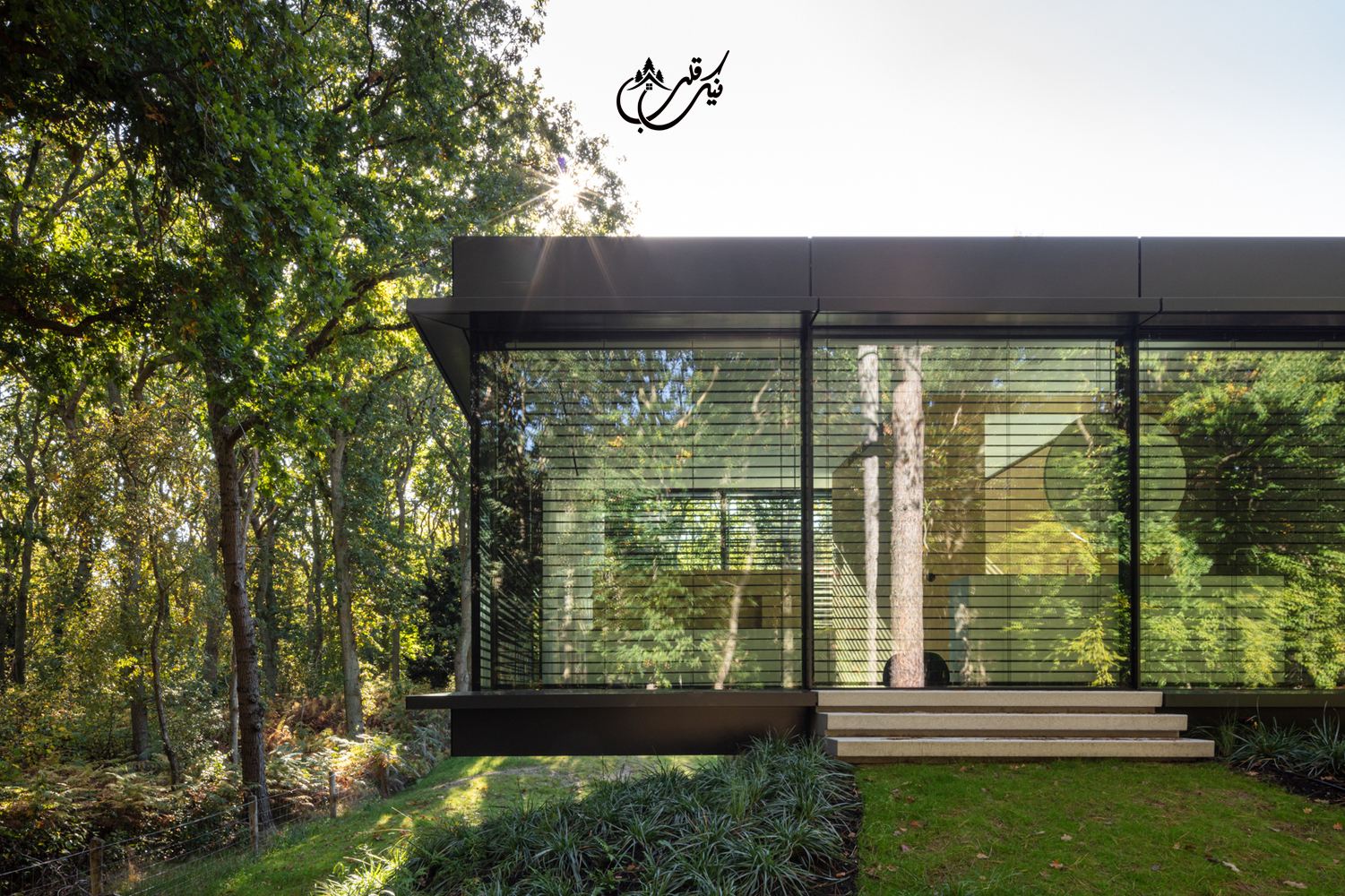 نمای شیشه ای این ویلا مناظر سرسبز محیط اطراف را منعکس می کند و یک تعامل جذاب از خطوط را ایجاد می کند. این ساختمان به طور کامل با چشم انداز ادغام شده است، زیرا محیط های مواج اطراف سازه را می پوشاند و ساخت و ساز را در بر می گیرد. از جمله تراس بزرگ با استخر و جاده دسترسی که از همان مصالح و فرم های ویلا ساخته شده اند. اضافه شدن یک لبه سایبان در بالا و پایین حجم این تصور را ایجاد می کند که ویلا شناور است و انگار از محیط اطراف خود جدا شده است.