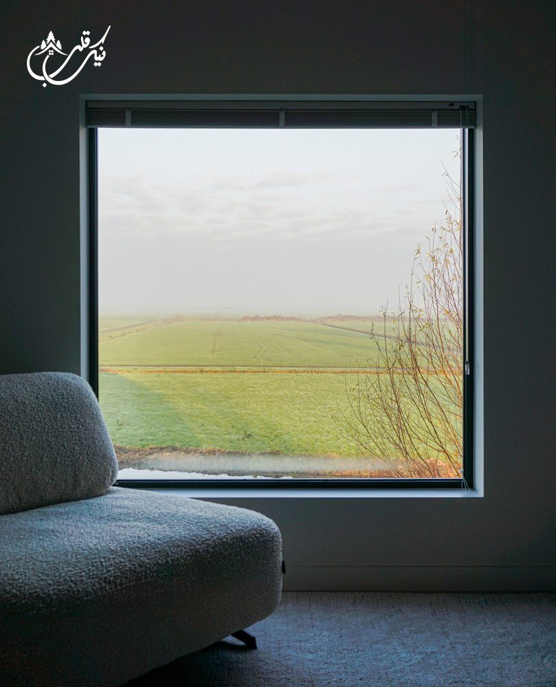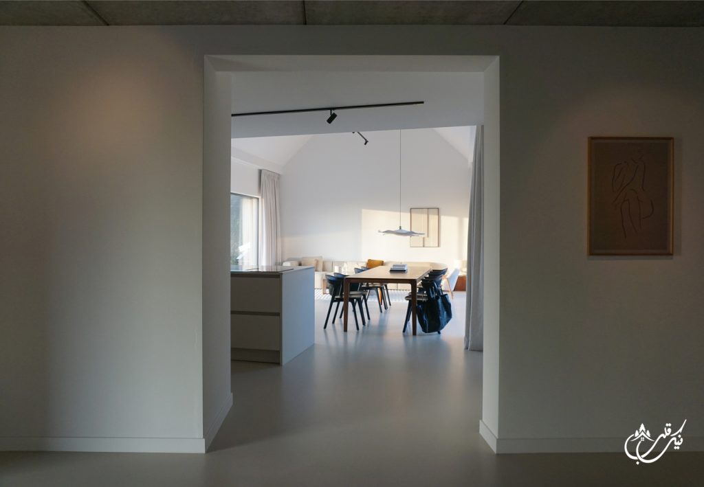 فضای نشیمن و غذا خوری دارای دو منظره متفاوت می باشند. دهانه ورودی این دو فضا با 6 متر فاصله بین دیوارها تعبیه شده است. زمانی که شما در اتاق نشیمن این ویلا قرار دارید چشم اندازی فراتر نسبت به جاده روستایی خواهید داشت. از درون این ویلا شما مسلط به دو چشم انداز خواهید بود که زیبای کم نظیری را در ذهن شما رقم می زند.